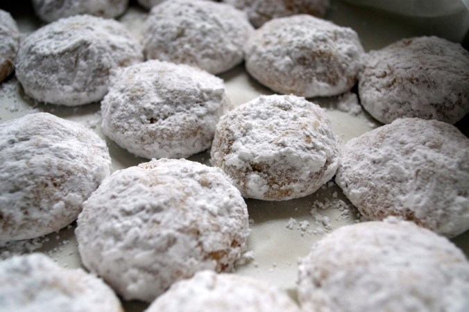 ANYWHO. Say hello to Lemon Drop cookies. I found some recipes for lemon drop cookies. And I found some recipes for Mexican/Italian Wedding cookies (seriously, they’re really freaking similar – who knew Mexicans & Italians shared wedding cookie recipes). I wanted a hyprid cookie. I made a list this morning of all the dry goods I’ve purchased this year (mostly from Echo Hill). I have a TON of dry goods. I’m ready for the apocalypse. Amongst the 2 column, page long, collegiate ruled notebook paper list I made were raw blanched almonds, powdered sugar, various flours, vanilla, vanilla beans, blah, blah, blah, blah, +50things.